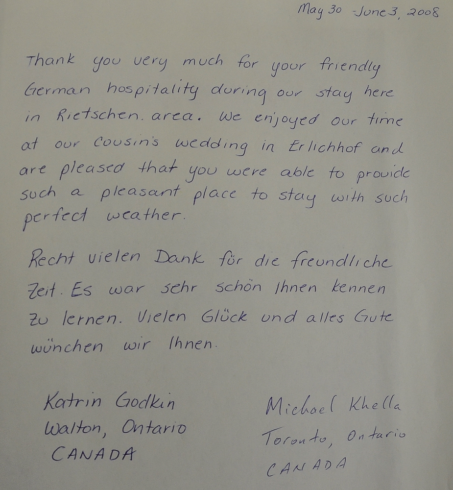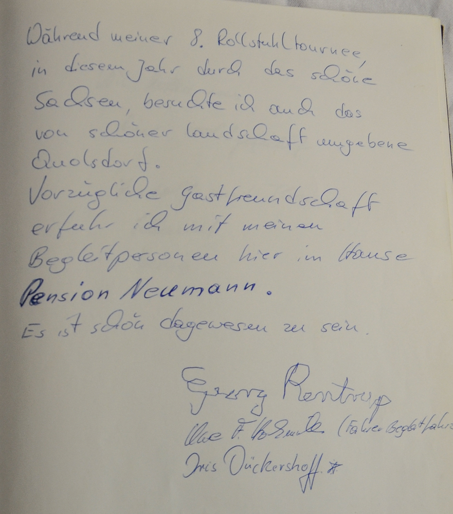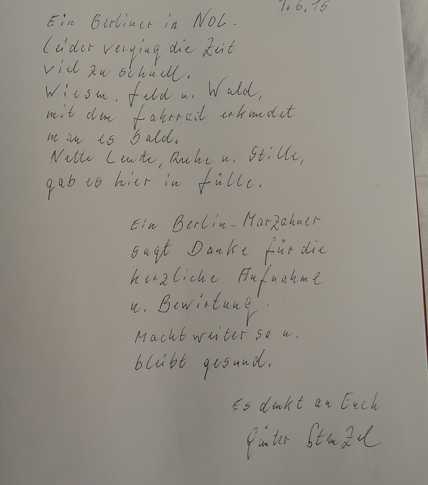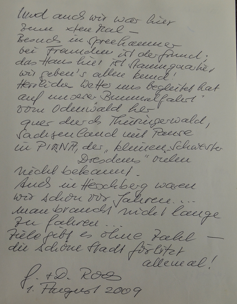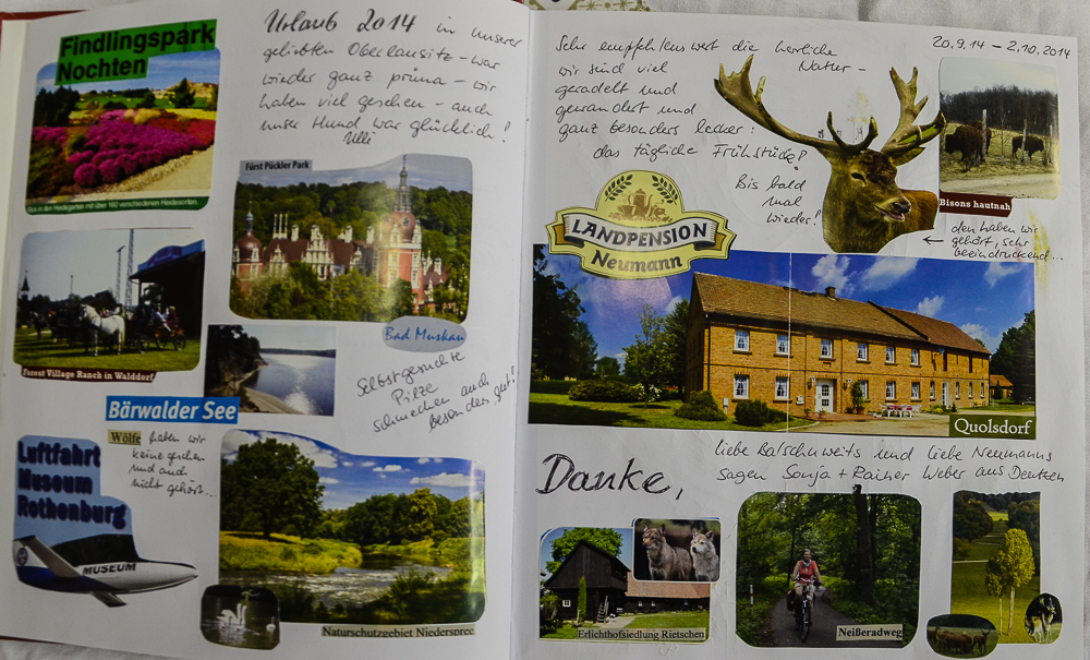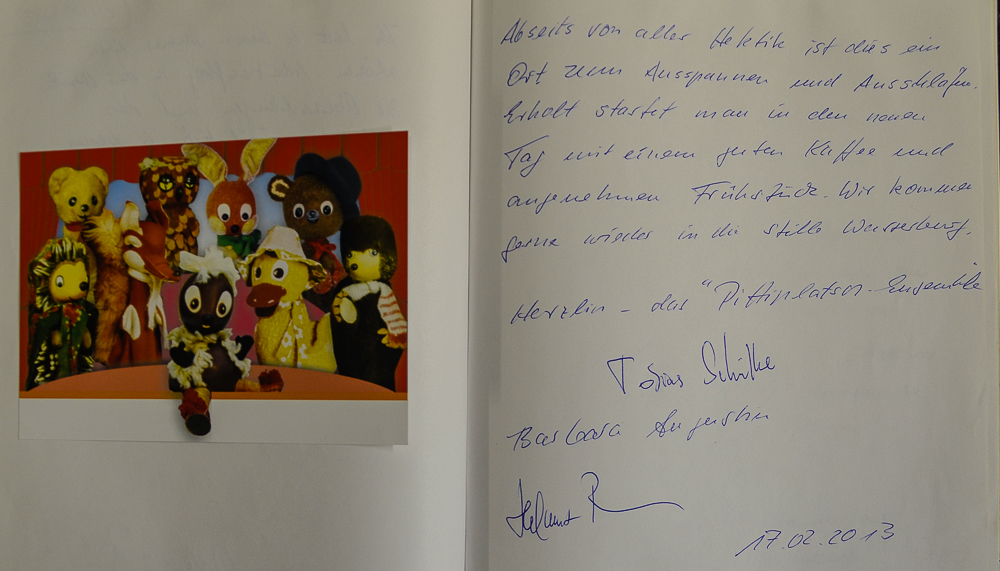 Wir haben von netten Gästen ehrende Einträge in unser Gästebuch als schöne Erinnerungen erhalten. Es liegt bei uns in der Pension aus (kein Online-Gästebuch).